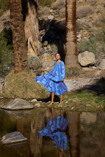 A-line cut and voluminous long sleeves.